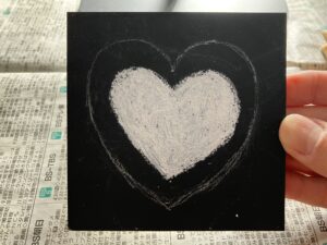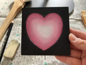 補足としてチョークアートは短時間で色を混ぜすぎると画材の油が摩擦で温かくなって柔らかくなり色が乗りづらくなることが出てくるので、その時は少し置いておきましょう。