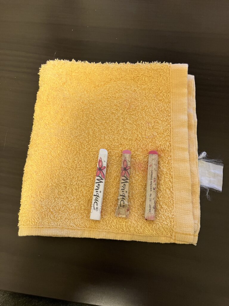 描いている際にオイルパステルにつく他の色や汚れを拭いて綺麗に描くために使用します。100円ショップで買ってもいいですし、お家にあるもので構いません。